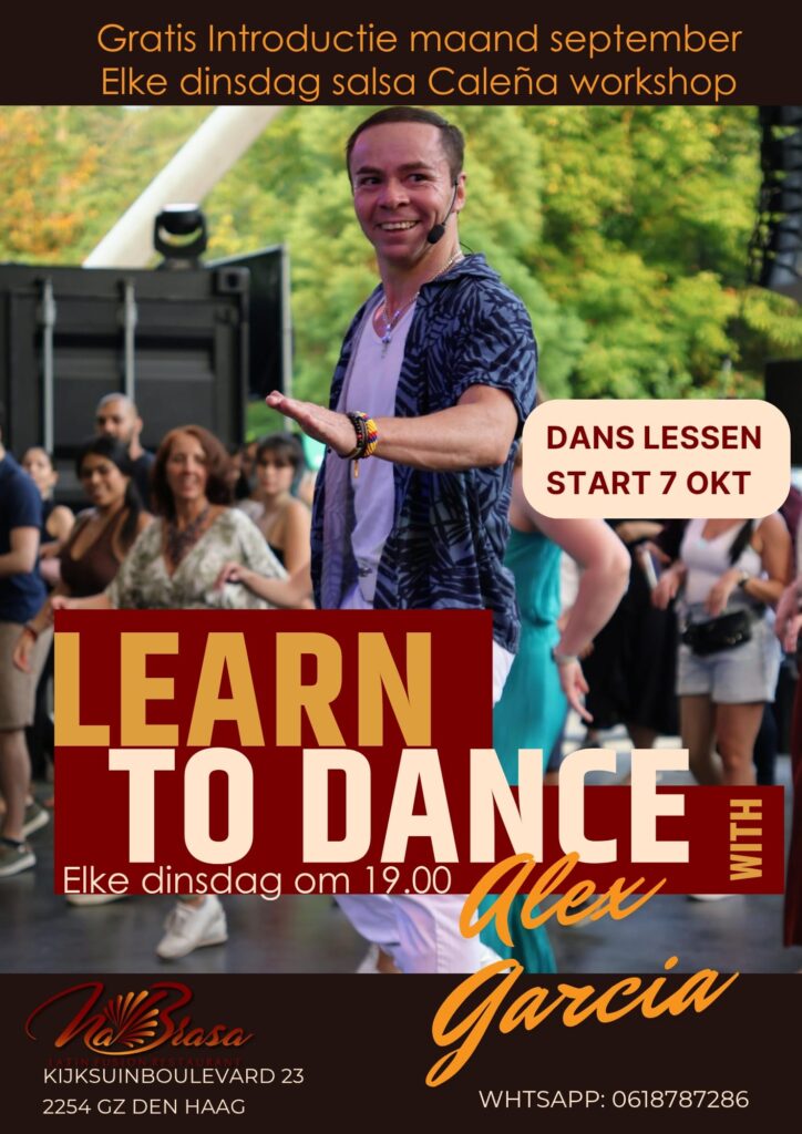 Elke dinsdag: Salsa Caleña by Alex Garcia (September introductie maand) Vanaf Oktober 80 euro voor een maand lang – elke dinsdag vanaf 19.30 uur (19:00 uur inloop)